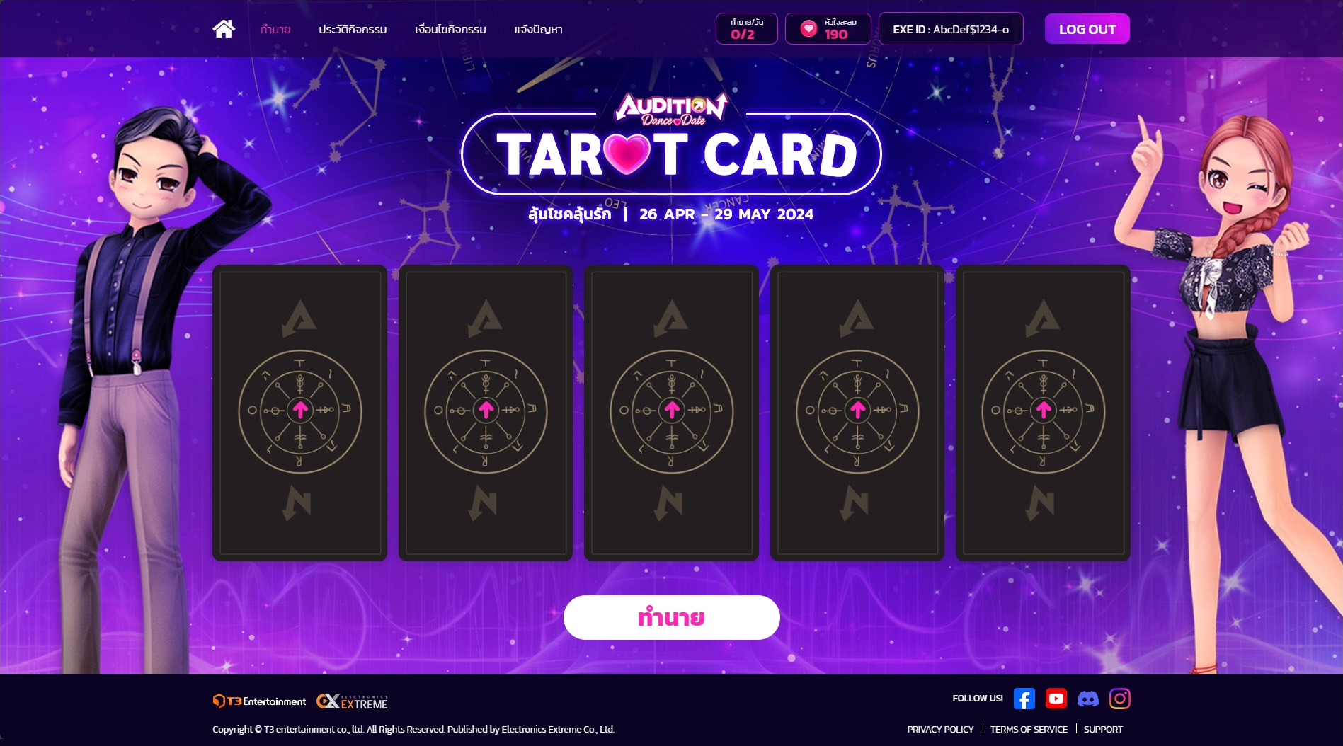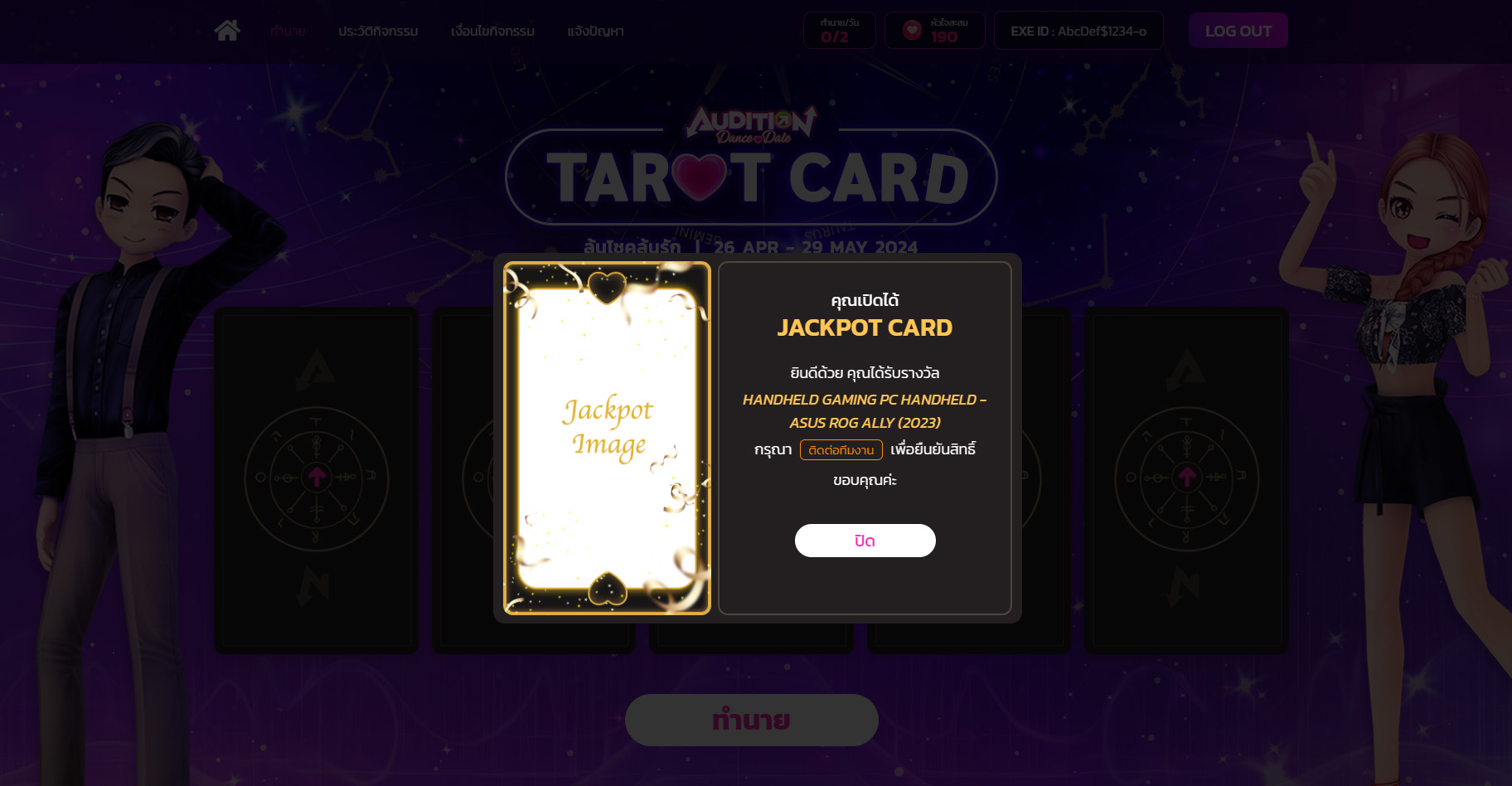 “The Tarot Card event page was designed as an interactive experience that enhances the fun and vibrant image of the Audition game, allowing players to randomly draw cards for a chance to win in-game and physical rewards.”
